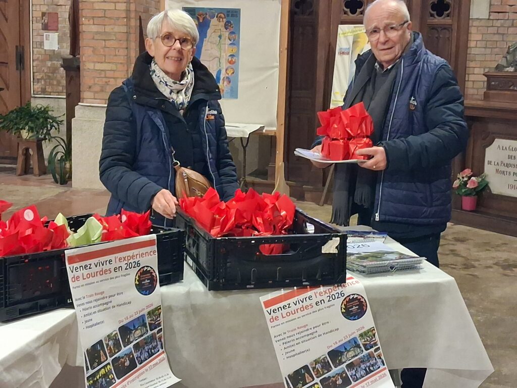 Vente de Jacinthes et de calendriers à la sortie de la messe au profit du Train Rouge afin d’aider certains malades à nous accompagner à Lourdes en juin prochain