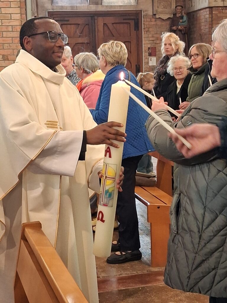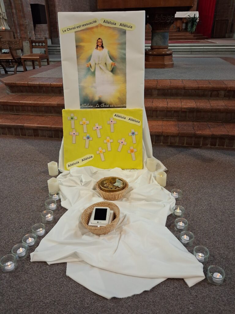 2 particularités pour cette messe : des chants de Pâques en burundais et l’introduction de la quête electronique.