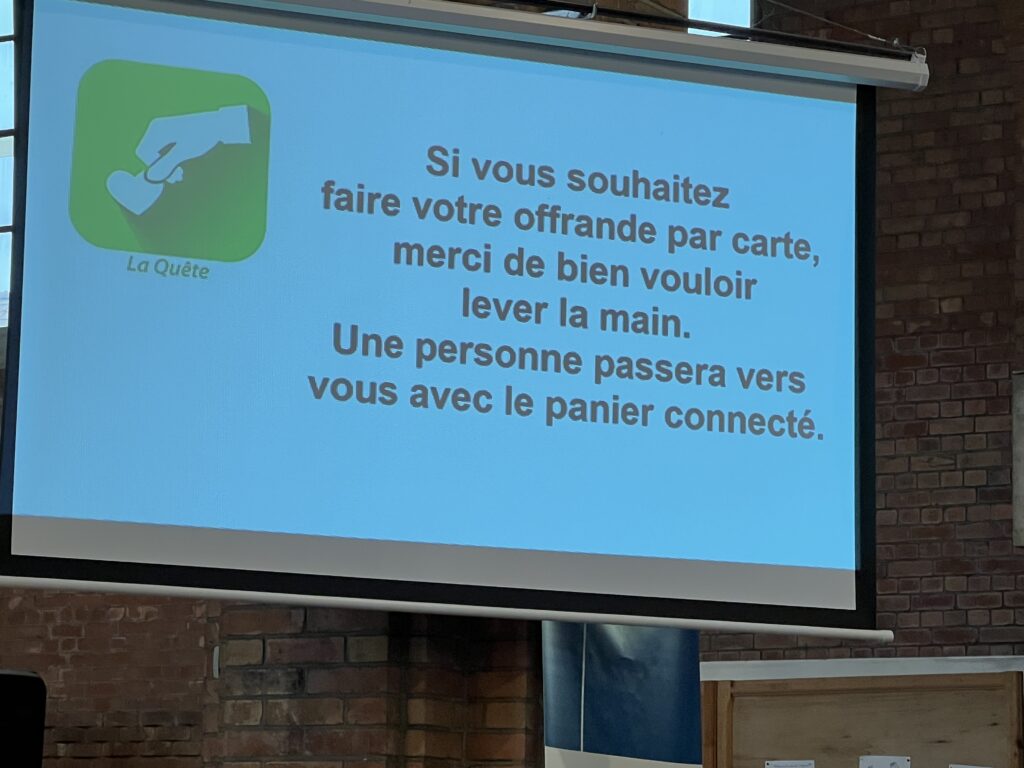 Une nouveauté dans la paroisse, la participation à la quête à l’aide de sa carte bancaire; plus besoins d’avoir des billets ou de pièces, il suffit de passer sa carte devant le boitier après avoir choisi le montant de son offrande