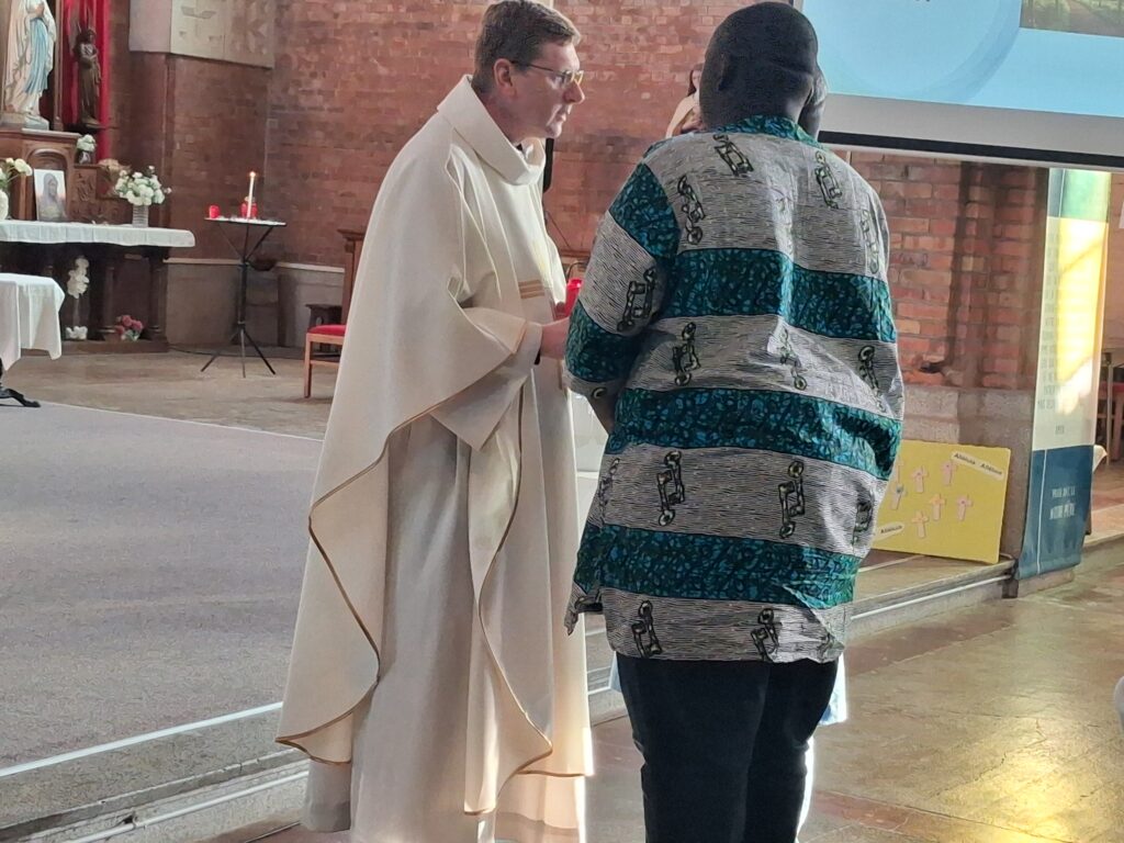 En fin de célébration, le prêtre remet un lumignon aux familles ayant eu un deuil familial récent, dans notre paroisse