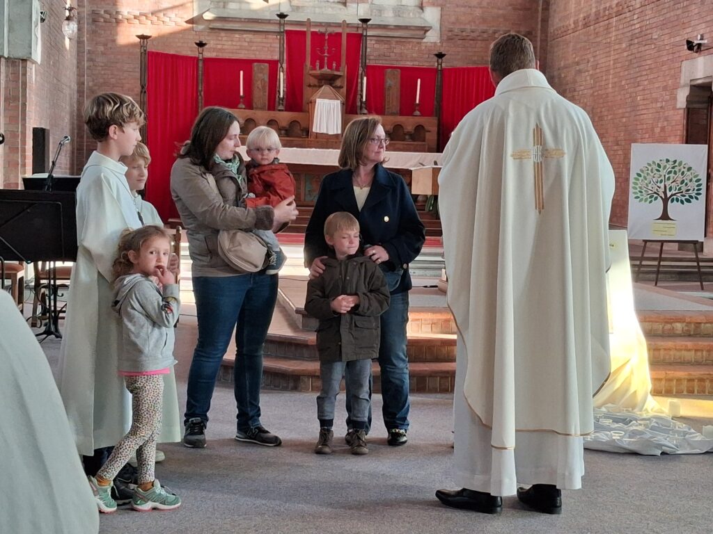 Il accueille ensuite la famille et les enfants baptisés prochainement