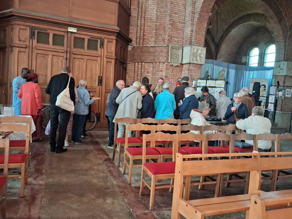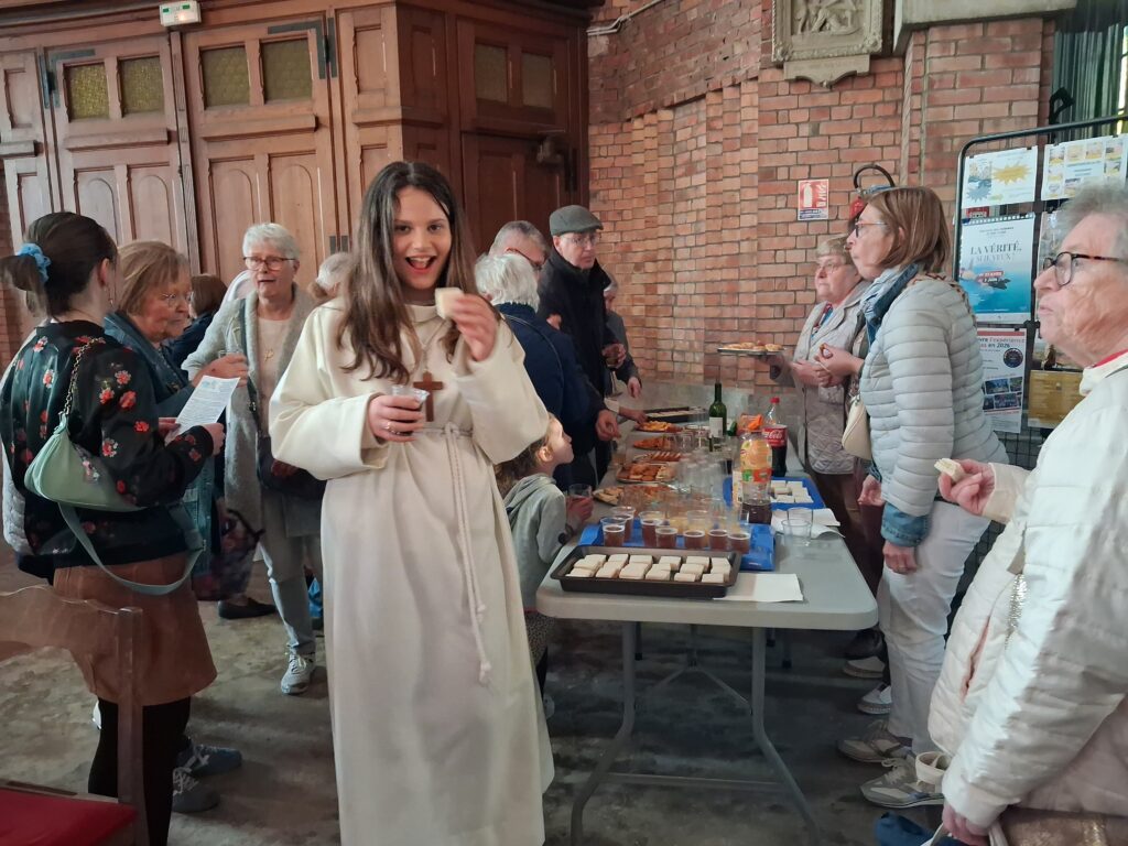 Après la messe temps convivial préparé par Françoise et une équipe autour d’elle , ce temps est important car il permet des échanges entre paroissiens . Pour mémoire, ce temps est organisé chaque dernier samedi du mois